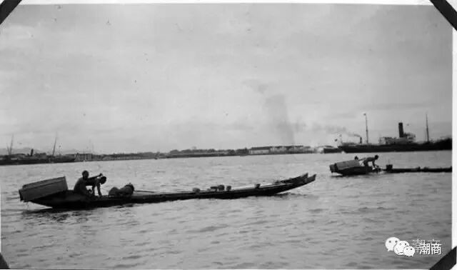 1922年,在汕头划浆前进的“枋溪条”照片,美国南加州大学图书馆藏
