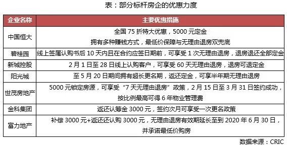 2月13日,恒大在全行业率先实施了全国所有楼盘网上购房的营销举措,为消费者提供网上VR看房、网上选房与网上购房等一站式服务,并推出大力度的优惠政策。在这次活动带动下,恒大集团2月份网上累计认购99141套房屋,优惠后总价值为1026.7亿元,直接带动恒大集团在2月份的业绩大幅增长。根据知名房地产行业研究机构克而瑞发布的报告显示,恒大集团在2月份实现销售470亿元,同比增长118%,位居行业第一。