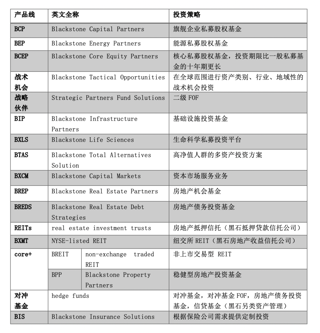 黑石的产品线。来源:《棱镜》绘制