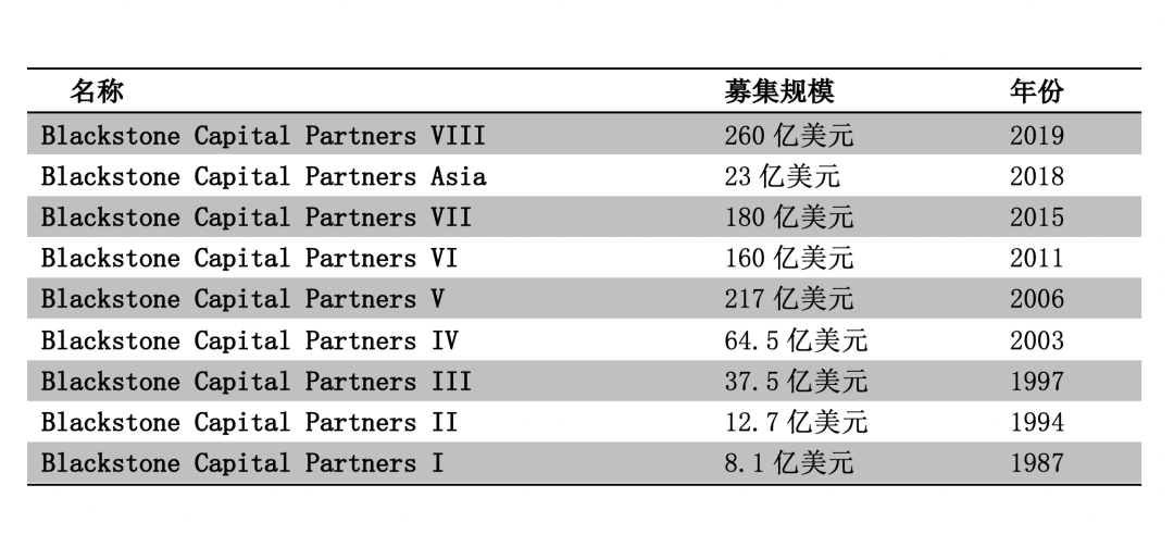 2019年,旗舰并购基金黑石资本伙伴第八期(BCP VIII),募资260亿美元,超过08年金融危机前217亿美元的记录;黑石房地产伙伴第九期(BREP IX)募资205亿美元,成为有史以来最大的地产基金。