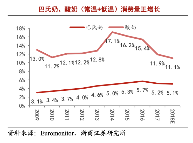 虽然目前我国低温奶市场份额不超过25%,但增速迅猛。相关数据预计,2018-2024年复合增速7.4%,高于常温奶的1.9%。2019年中国巴氏奶市场规模约343亿元,同比增长11.6%。
