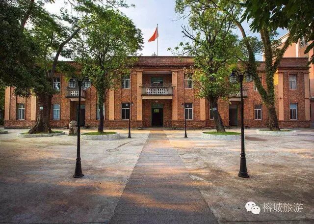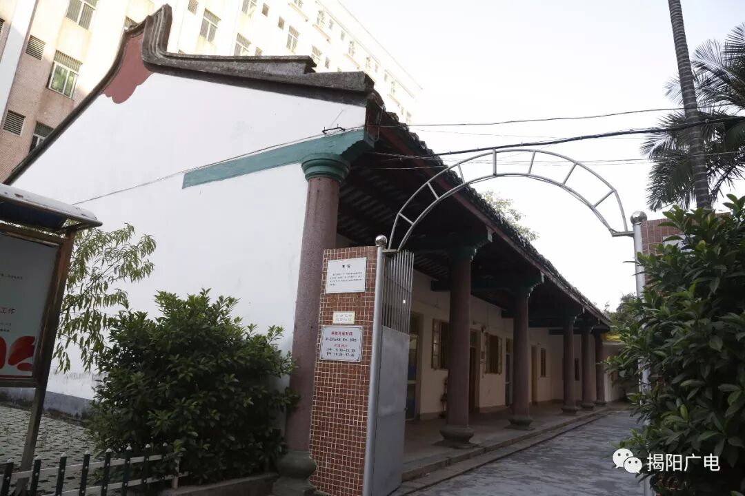 揭阳县科举考试遗迹——榕江试舍,俗称考院,是岁科童试场所,建于清同治十年,占地291.5平方米,全揭阳现仅存一座。考院整体轮廓还清晰,现墙壁被重新粉刷,种上绿植,成了老师的办公场所。 红砖楼及考院、中山公园遗址,都是揭阳历史上具有划时代意义的建筑物。1993被列为揭阳市第一批文物保护单位。