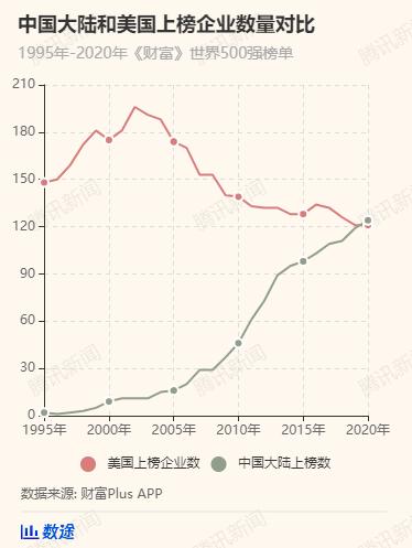 中国大陆(含香港)上榜企业数量达到124家,历史上第一次超过美国(121家)。华为是排名最高的中国大陆科技企业,排名第49位(去年第61),其排名首次超过中国移动,后者今年排名第65位(去年第56)。