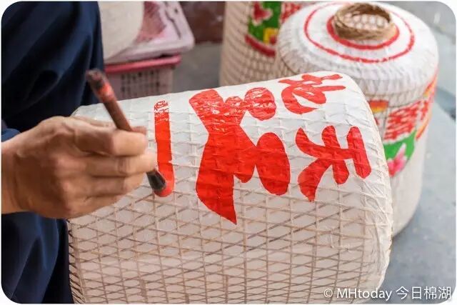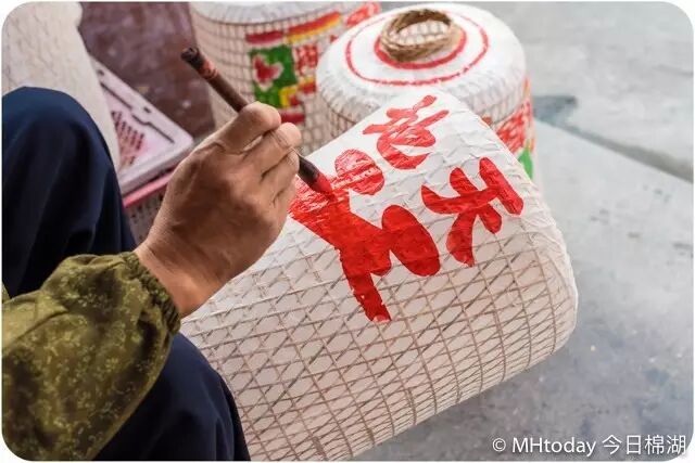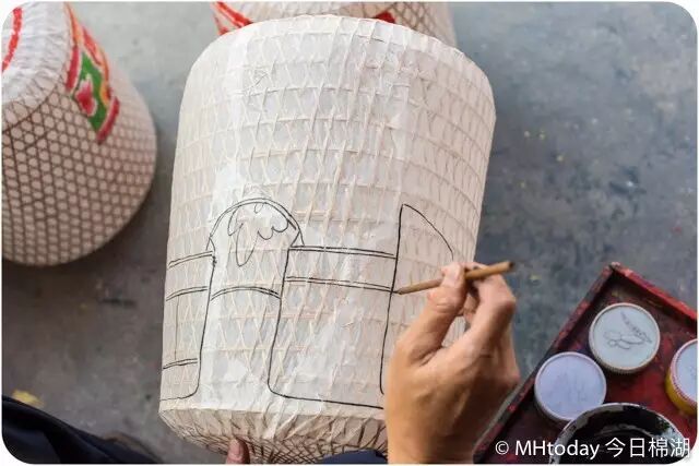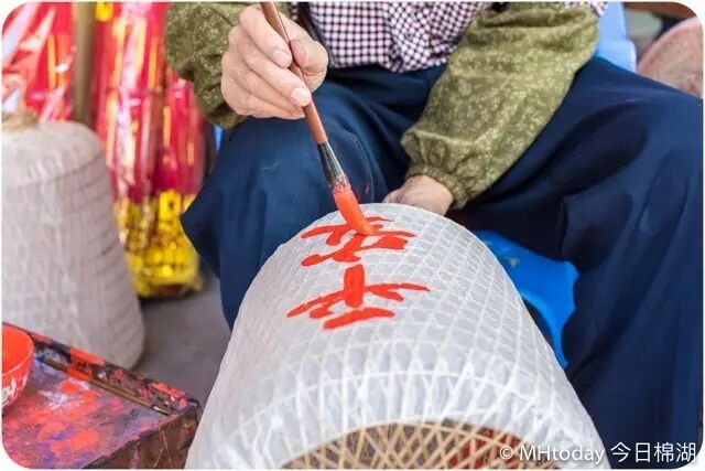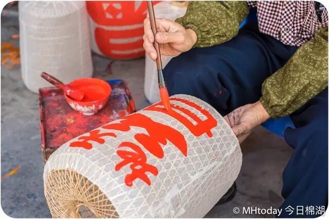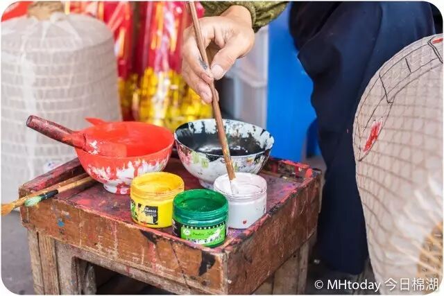 据吴师傅介绍,他家在棉湖写灯笼已经很多年了,自小他便跟着父亲学习这门手艺,传到他这里已是第五代了。“写”是竹编油纸灯笼的重头戏,写灯笼的师傅要粗通文墨,书法过得去,懂得各种姓氏灯号以便随时提供给顾客,还要有点美术基础,略懂一点颜色的搭配,以满足顾客的需求。