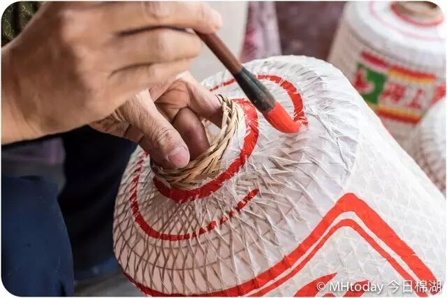 吴师傅先在灯笼壳外面贴上一层尼龙纸,然后用毛笔蘸上红色的颜料,在灯笼上写上姓氏、灯号和吉祥语。灯笼中的灯号是指各姓氏创姓之初的封地姓名,或是黄帝对其先人封赠、褒赞的官衔或赞誉,将中国的姓氏文化体现得淋漓尽致,例如,陈姓要写“颍川世家”或者“忠顺世家”,林姓要写“九牧世家”或者“西河旧家”……