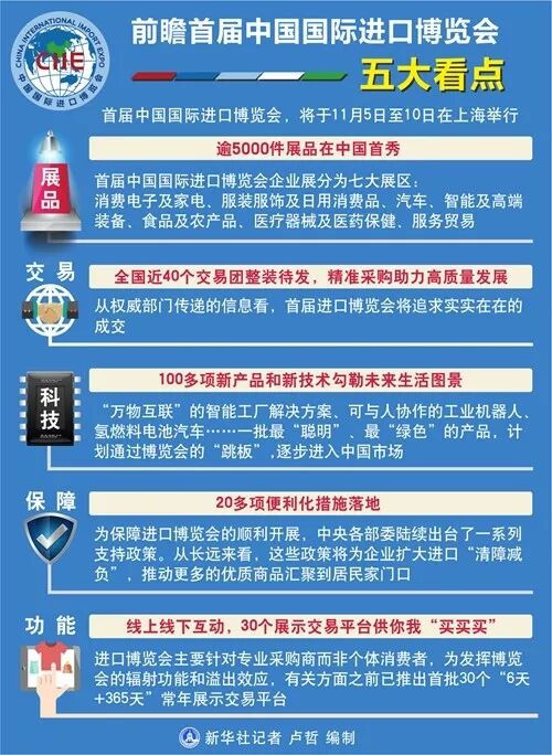 图表:前瞻首届中国国际进口博览会五大看点 新华社记者 卢哲 编制 首届中国国际进口博览会11月5日在上海开幕。记者11月4日提前探营时了解到,广东参展企业共6023家,其中制造业及生产性服务业企业占比超过60%,采购重点涉及智能及高端装备、食品及农产品、医疗器械及医药保健、服务等多个领域。 “我们为寻找技术合作而来,也希望在这里找到高质量的软件、芯片产品供应商。”珠海迈科智能科技股份有限公司副总经理孙文波说。 此次广东企业采购重点涉及消费电子及家电、服装服饰及日用消费品、智能及高端装备、食品及农产品、医疗器械及医药保健、服务等多个领域。如广东风华高新科技股份有限公司拟采购成型设备、珠江惠仁医疗健康投资有限公司拟采购医疗设备、东莞市盈聚电源有限公司拟采购智能制造产品等。广东省商务厅有关负责人表示,主动扩大进口既是推动广东产业升级的要求,也是满足人民美好生活需要的有力举措,更是推动新一轮改革开放的重要途径。 在这一开放合作的国际平台上,广东正在贡献力量。记者了解到,广东发动境外先进装备制造企业、行业龙头企业,广泛发动世界500强、行业龙头企业、“一带一路”沿线国家的企业参展,共向主办机构推荐报送超过1万平方米的意向参展需求。这些境外企业既包括来自美国、德国、韩国、日本等发达国家,也包括印度等新兴市场国家和地区。其中,不乏境外知名的行业龙头企业,比如德国库卡集团等。涵盖智能及高端装备、消费电子及家电、服装服饰及日用消费品等领域。 此外,广东交易团还将在博览会期间举办多项促交易、出实效的配套活动,如广东省与跨国公司高层座谈会、先进装备与产业对接研讨会、消费品进口对接会以及部分企业签约活动等。