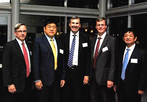 刘名中(左2)与唐山市清华校友会会长祝允林(右2)