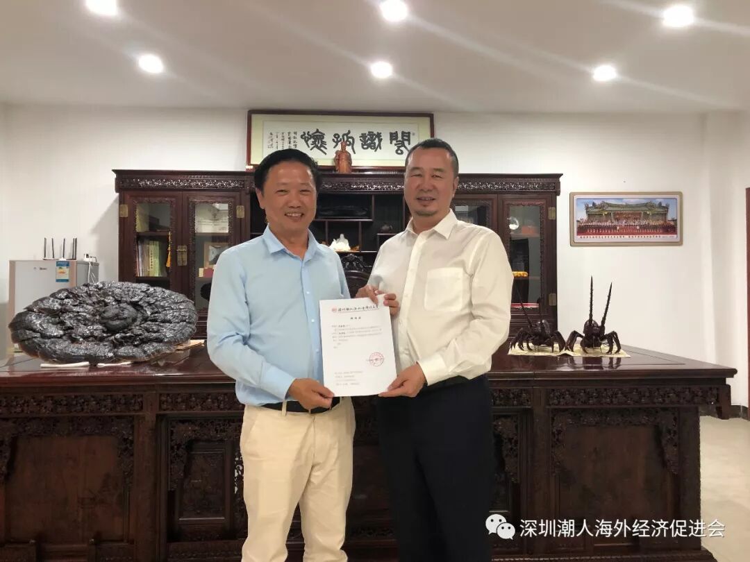 2018年11月14日,深圳潮人海外经济促进会会长赵财强,常务副会长陈启雄、赵楚龙、林楚东等一行赴肇庆四会市走访肇庆市登骏数码城有限公司、肇庆市登骏创业谷有限公司,受到公司董事长黄梅麟的热情接待。本会聘请他为战略决策委员会委员及常务副会长,由赵财强会长亲自为其颁发聘书,并合影留念。 交流座谈
