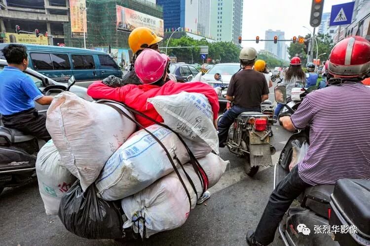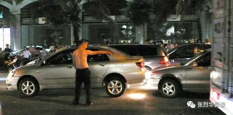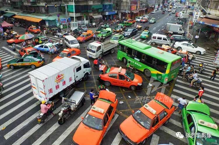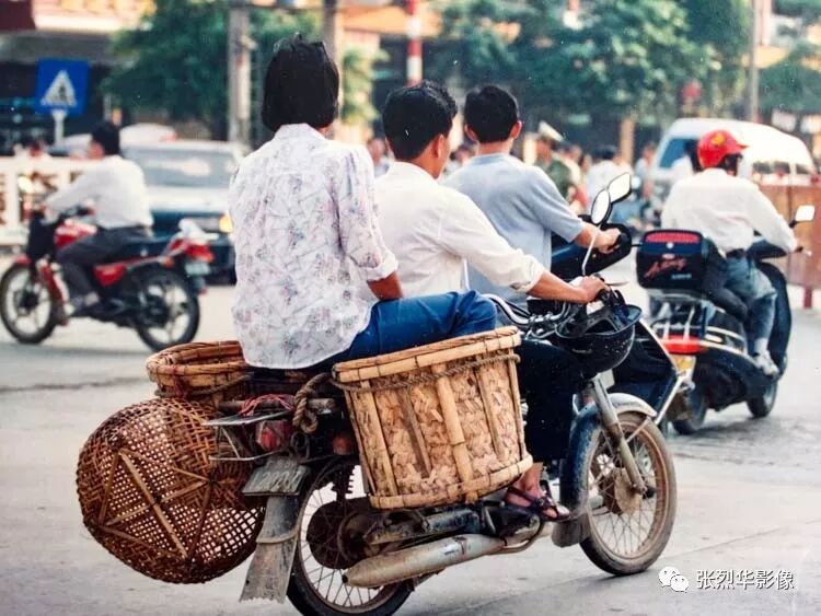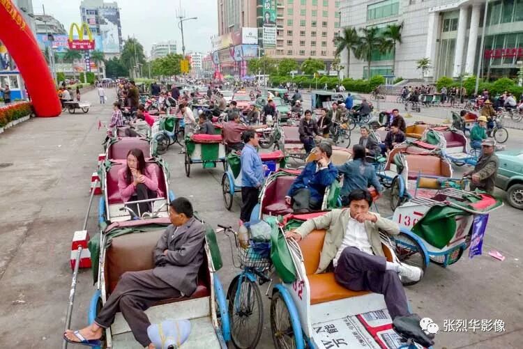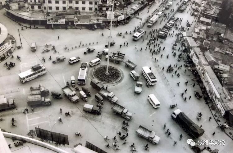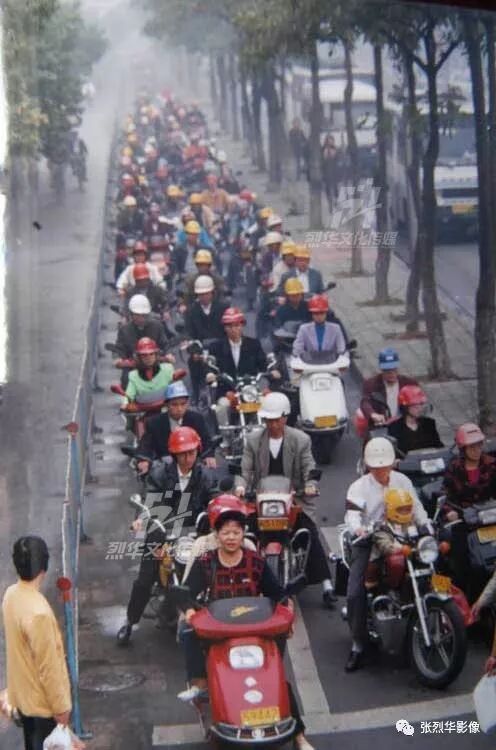 交通乱像 30多年来,从我拍摄的这一张张照片中可见交通之明显变化,请看当年交通是何等混乱,南国商城门口,庞大的三轮车队伍几乎占据了半条长平路,工友们却能如此心安理得,毫无畏惧之心。汽车与摩托混在一起争相抢道,更是令人叹为观止,行人翻越隔离护栏时常可见。机动车超载,十字路口,汽车抢道造成塞车也是经常之事。