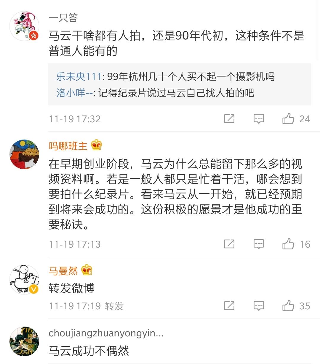提示:点击上方"潮商"关注我们 最近,一段马云第一次创业“海博翻译社”时接受媒体采访的视频曝光。 网友们纷纷感慨马云成功并非偶然。在那个年代,一般人根本不会有意识对创业进行影像记录:看来马云从一开始,就已经预期到将来会成功的。这份积极的愿景才是他成功的重要秘诀。