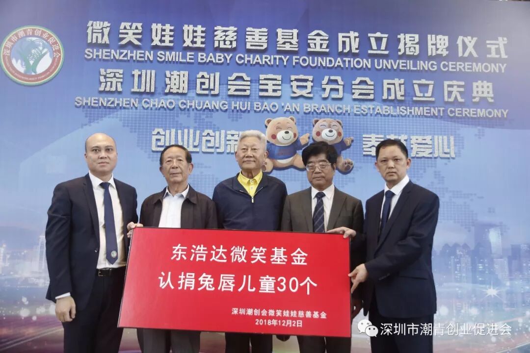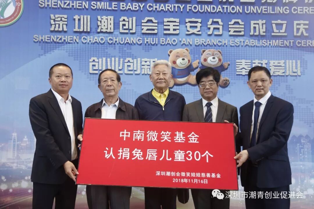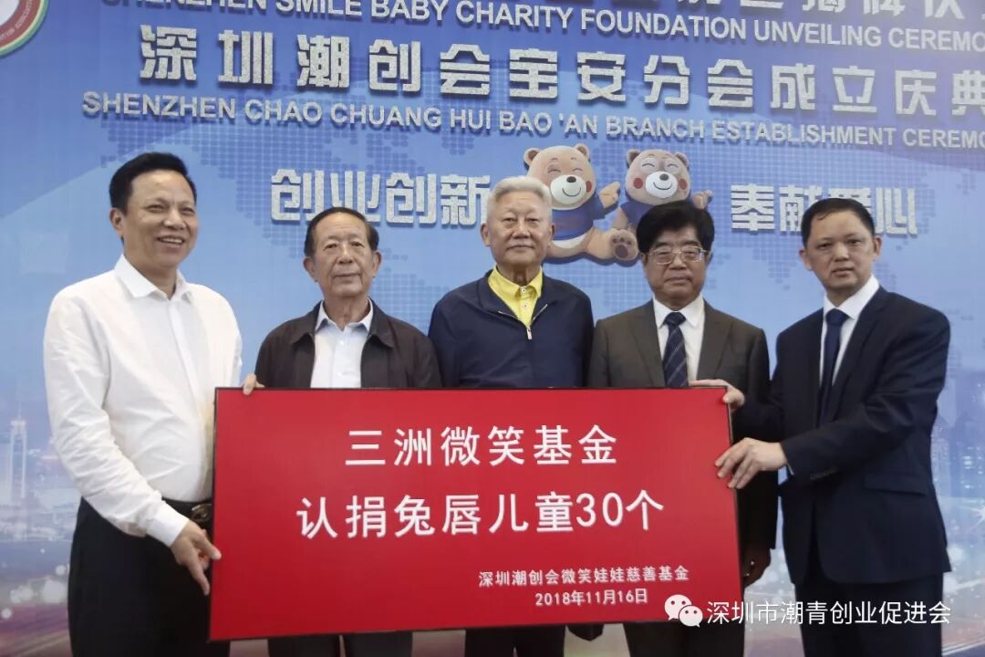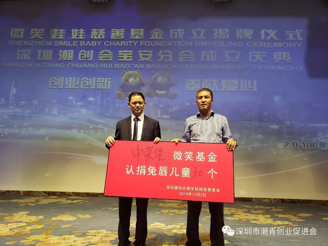 深圳微笑娃娃慈善公益活动由潮创会会长蔡文川发起,为潮汕地区乃至全国贫困家庭唇腭裂儿童提供治疗救助善款和医疗资源。至今已经为300多个家庭送去温暖,成功治愈兔唇儿童300多例。