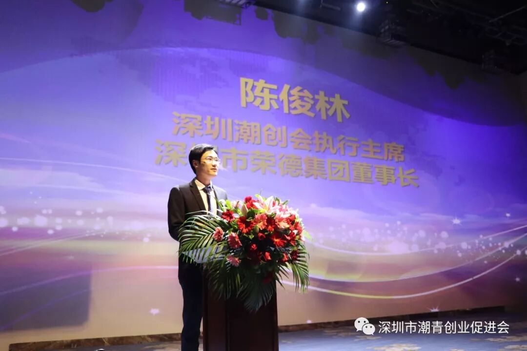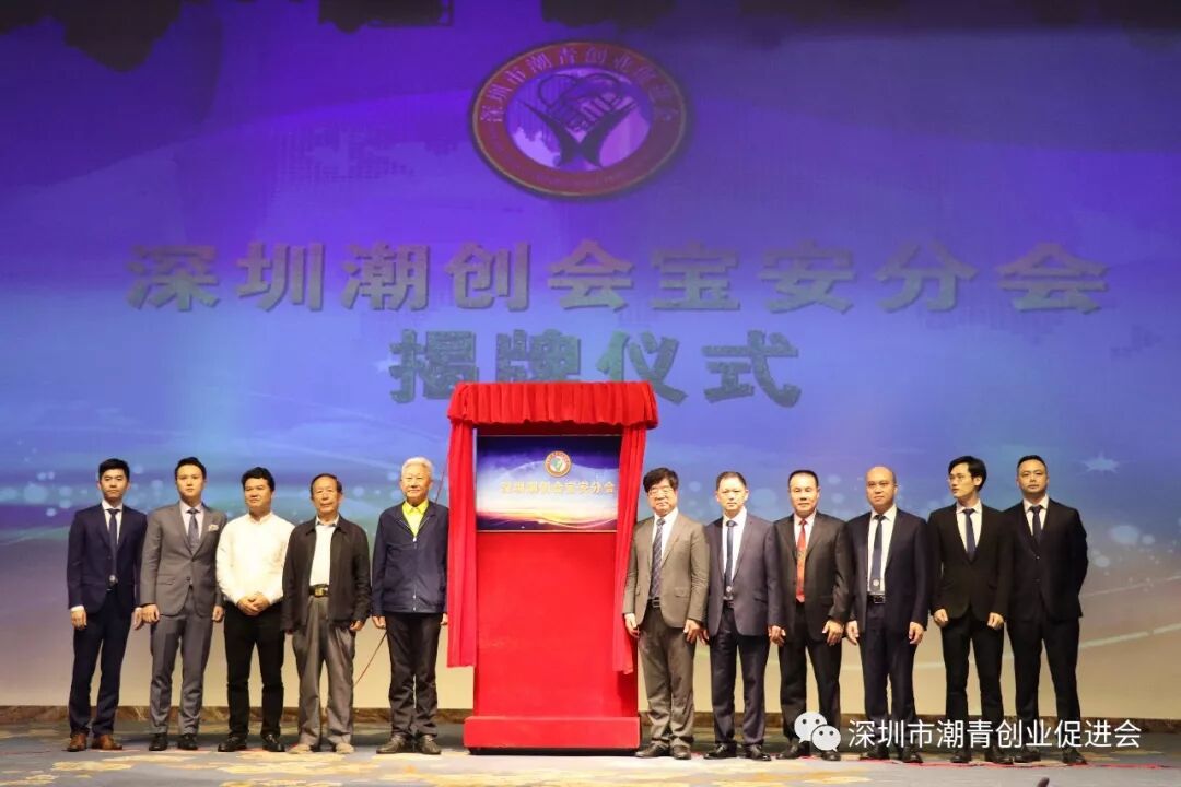 潮创会执行主席、优秀青年精英代表陈俊林代表常务主席团发言分享自己的创业故事、分享加入潮创会的收获和成长。 李统书、庄礼祥、李友烈、蔡文川等人共同为潮创会宝安分会揭牌,同时为新加入会员进行颁牌。