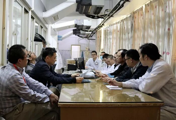 劳教授、庄教授团队与大峰医院手外科的科室医生讨论交流手术方案 在确定了手术方案之后,劳教授、庄教授团队在大峰医院门诊楼为25位先天性手足畸形的患儿进行了义诊,并向家属耐心解答了有关患儿的治疗与康复等问题。