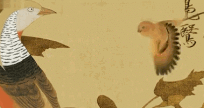 宋徽宗的那幅《芙蓉锦鸡图》 给了他灵感! 他开始临摹,从小画到大, 他几乎可以乱真了。 盯着那只锦鸡出神,画上的鸟儿像是活的。