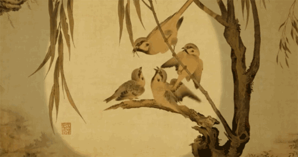 短片从第一帧画面开始, 古韵悠然,风吹树叶动,鸟飞展翅高, 精妙绝伦的宋代古画仿佛有了生命。