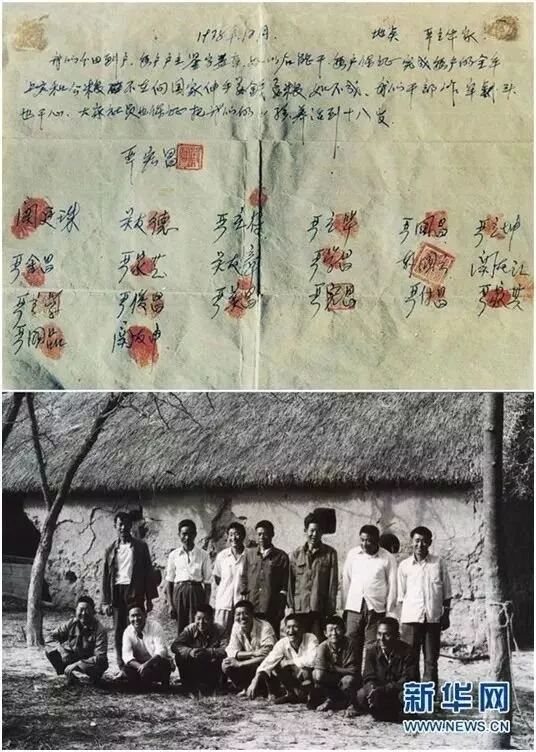1978年11月24日 安徽省凤阳县小岗村 全村18家农户的户主 在土地承包责任书上按下鲜红手印 并当场立下字据 实施了 “大包干” 拉开了中国农村改革的序幕