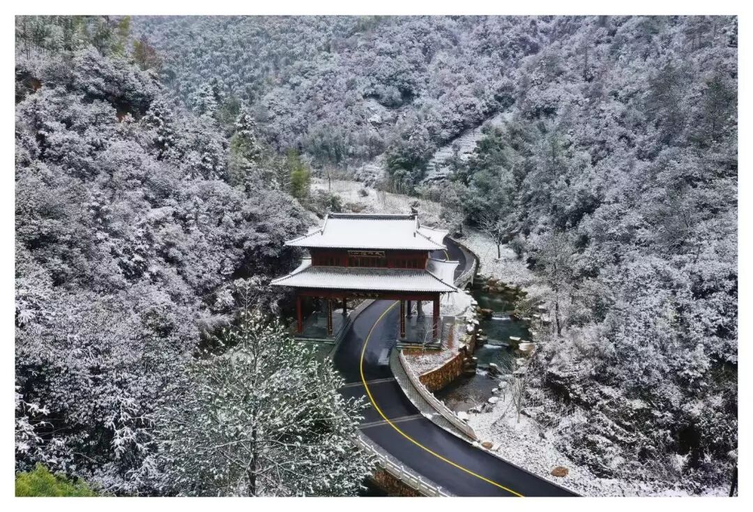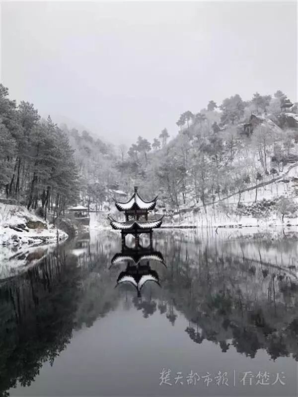 武汉黄陂清凉寨 亭台楼阁在雪中伫立