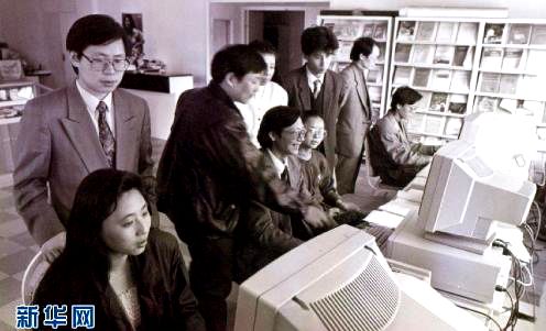 王文京早年与用友研发人员在加班中