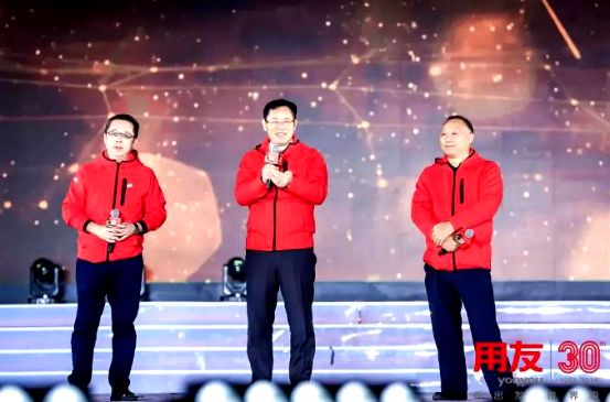 董事长王文京、副董事长郭新平及董事吴政平在用友30年庆典