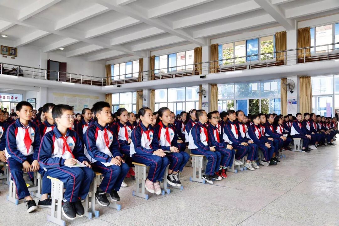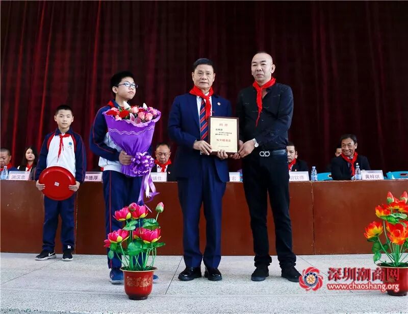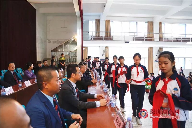 西岐学校学生代表为深圳市潮汕商会领导戴红领巾 出席领导嘉宾
