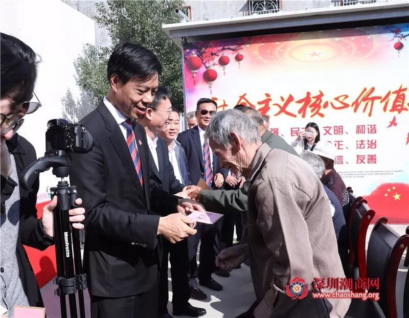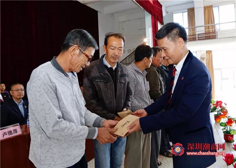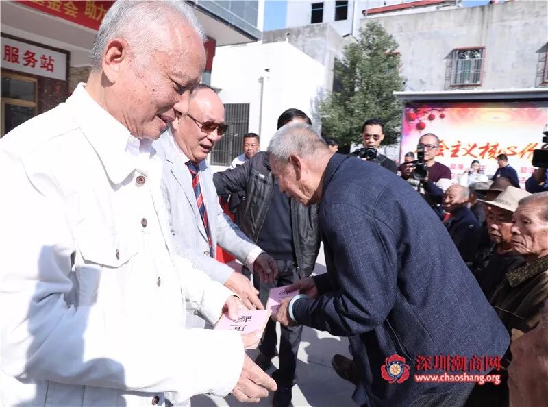 深圳市潮汕商会会长吴木棠向村里老人发放慰问金