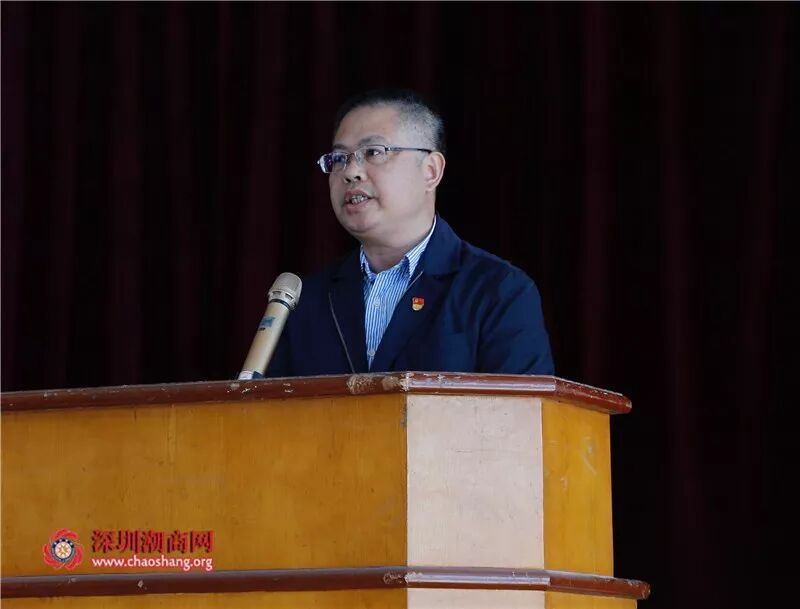 黄育宏驻会会长讲课 深圳市潮汕商会驻会会长黄育宏主要围绕“理想”和“心态”为师生们授课。他表示,做人要有理想、要有追求,做事要脚踏实地不怕吃苦,学习就要刻苦坚持。