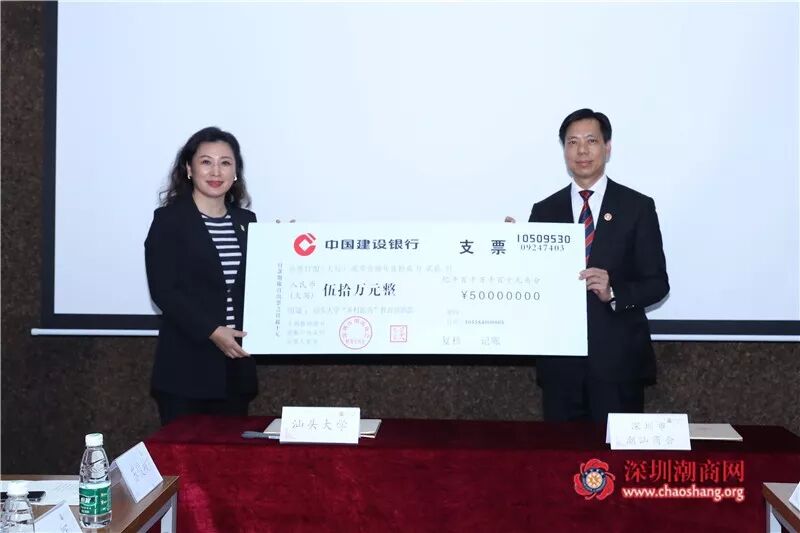 吴木棠会长代表商会向汕头大学捐赠50万元