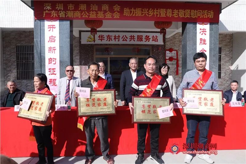 深圳市潮汕商会会长吴木棠表示,这些年,我们虽在外拼搏,心却常系家乡,一直关注家乡的发展。今年,商会发起了“乡村振兴反哺家乡”系列活动来助推家乡发展。今日以“尊老敬贤”为主题,我们觉得一个懂得尊老敬老的社会,才是真正现代文明的社会。但是,一个和谐尊老的社会需要多方出力,商会特向会员企业发出倡议,“老吾老以及人之老”,为老人做好事、献爱心,践行新时代孝道观念,营造尊老敬老、爱老助老的社会氛围,为孝道美德注入新活力。 活动上,吴开松创会会长、吴木棠会长代表商会向华东村委捐赠50万元,华东村吴茂才书记接受捐赠资金。汕头市委副书记钟挥锷,汕头市委常委、统战部部长陈丽文,潮阳区委书记蔡永明和深圳市潮汕商会创会会长吴开松向尊老敬贤模范家庭颁发牌匾及慰问金。