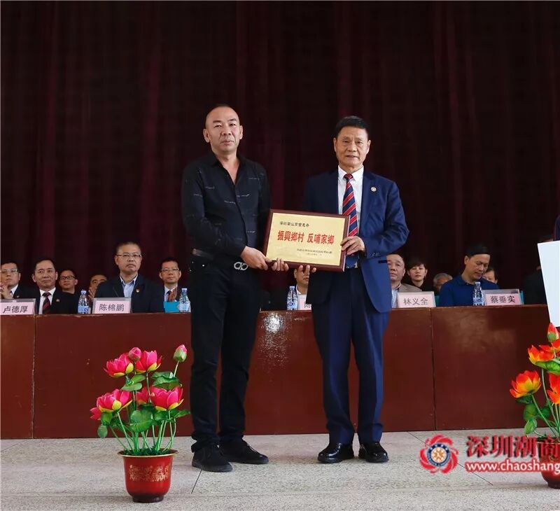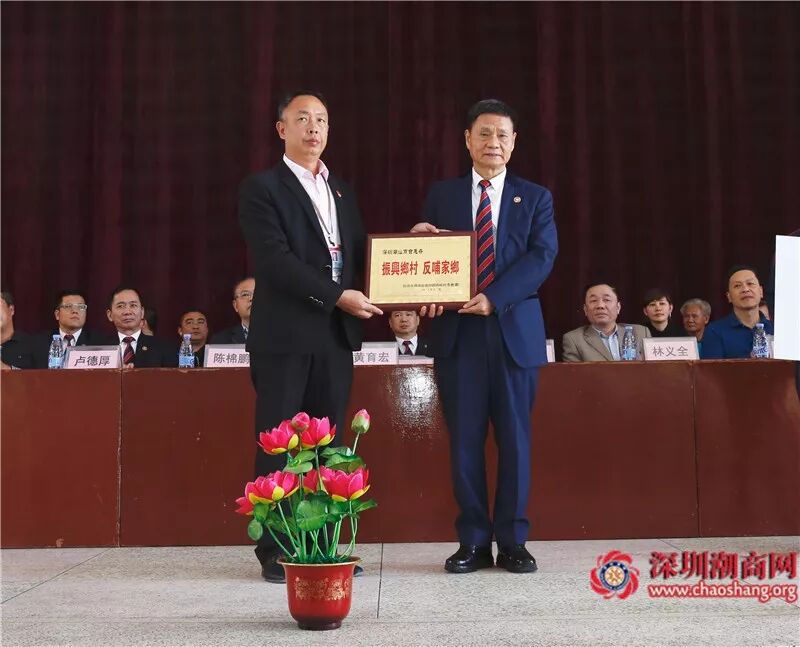 西岐公益慈善会代表向深圳市潮汕商会赠送“振兴乡村 反哺家乡”牌匾
