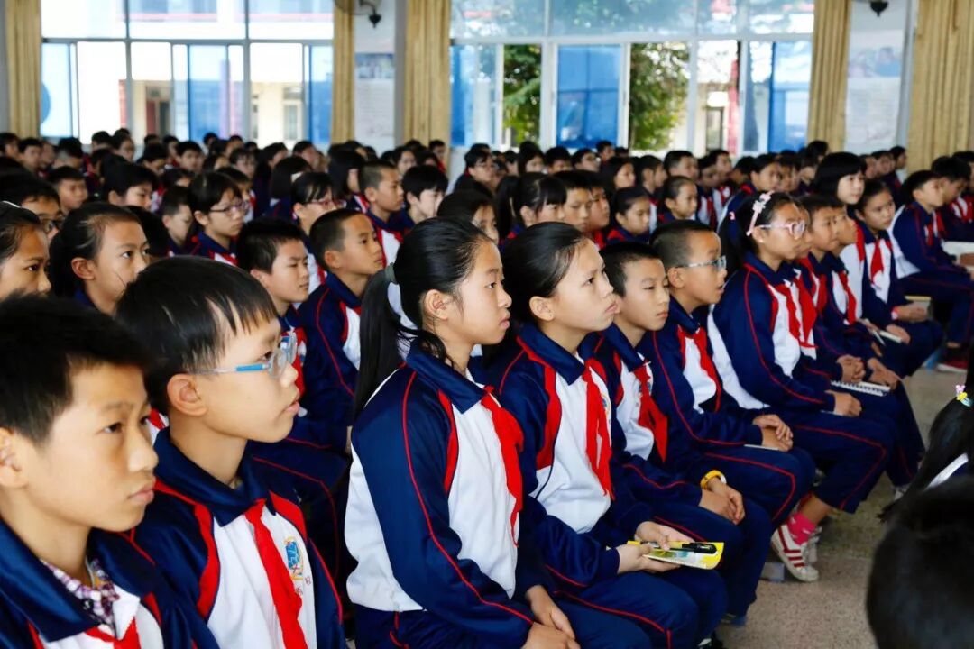 集体合影 另一队潮南队在黄育宏驻会会长的率领下,到其母校西岐学校开展振兴乡村精准扶贫下乡活动。黄育宏驻会会长结合自己的人生经历和感悟为母校的学弟学妹和师生们上了一堂意义深刻的创新辅导课。