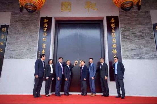 何享健、何剑锋、方洪波(右2)等为“和园”开园