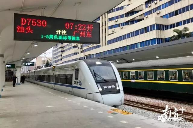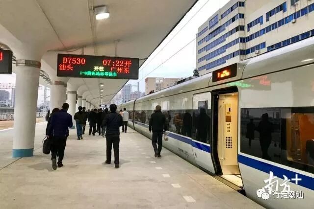上午7时22分,汕头站首趟动车(汕头—广州东)D7530开出。