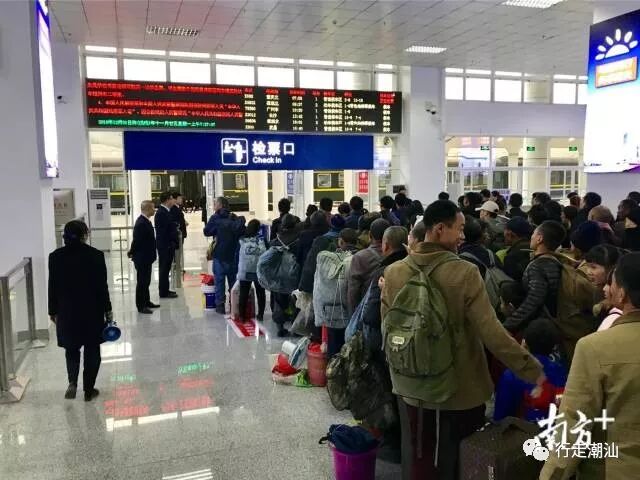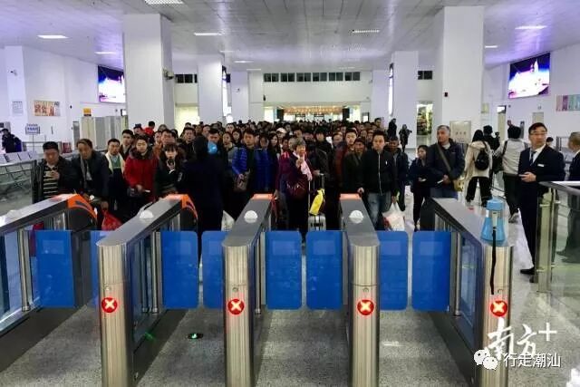 上午7时26分,汕头站检票口已经有许多乘客等候上下一班列车。