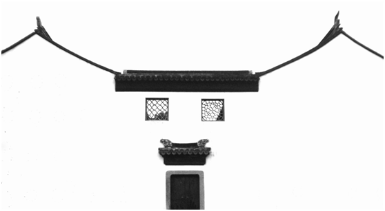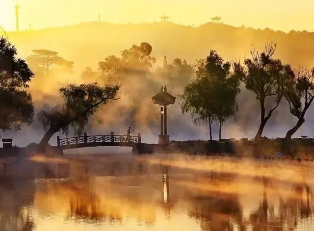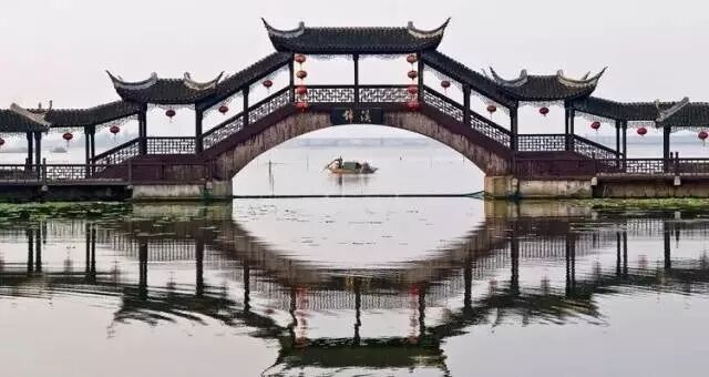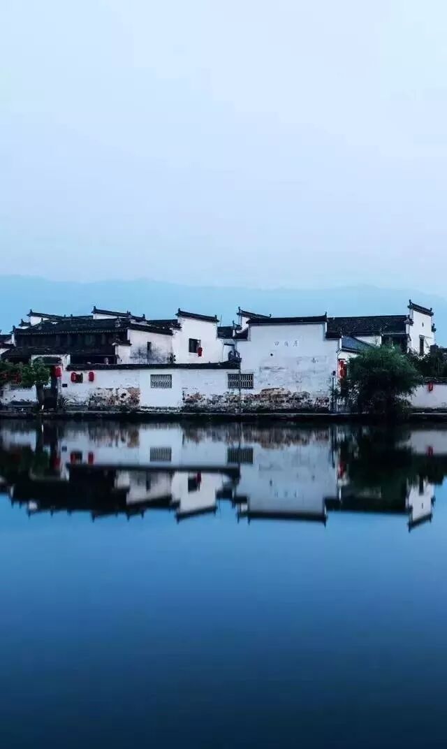 屋顶倒映在水面上 半圆变成圆 三角成了方 一排连成一片 ................................................... ![]()