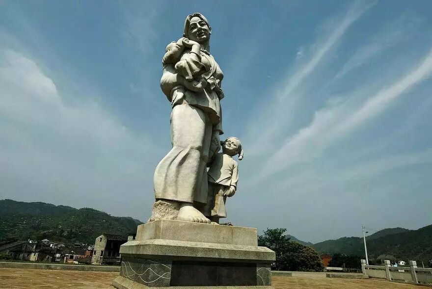 三河坝三江交汇处,立着一“韩江源”石雕,“母亲高9.8米,重136吨,为头扎发髻,背男牵女,勤劳善良的客家妇女形象,与对面的睡美人遥遥相望、相得益彰。此石雕意为世界客都的人文秀区梅州大埔与潮汕平原一衣带水,客潮两地人同饮母亲河水成长,携手共创美好明天。”