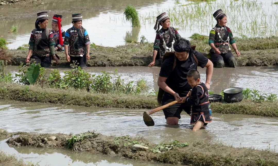 2018-04-28,云南元阳。开秧门仪式上,父亲教儿子耙地。一年一度的开秧门意义之一就是传承哈尼梯田的农耕文化……作者:蜗牛 《 乡村灯会》