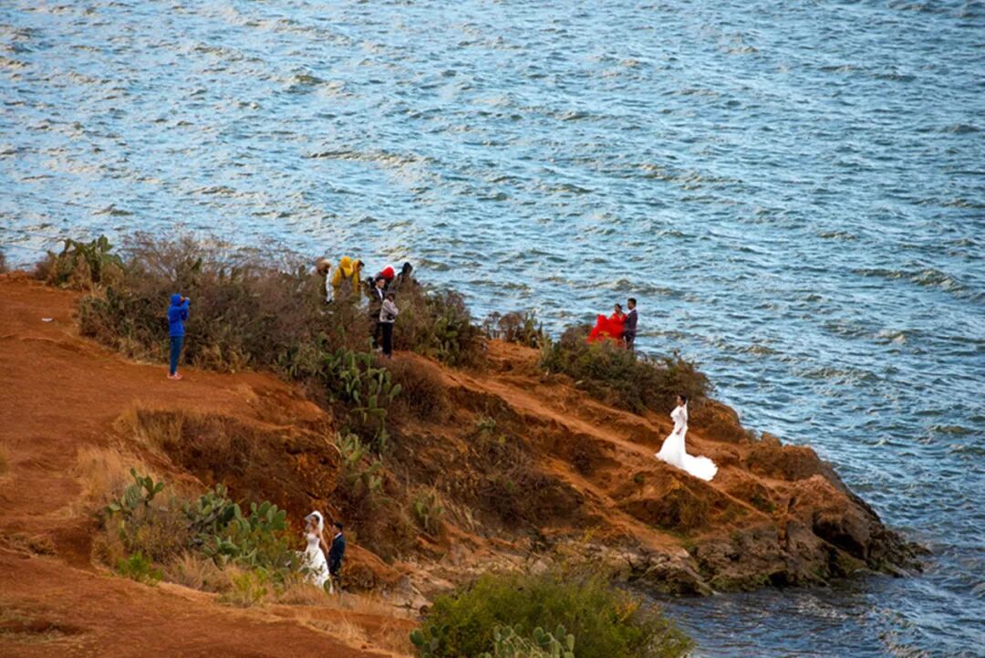 2018-12-09,云南大理。导游介绍,每天都有许多旅游结婚的伴侣在洱海边拍婚纱照。作者:清江河畔 《梨园赏春》