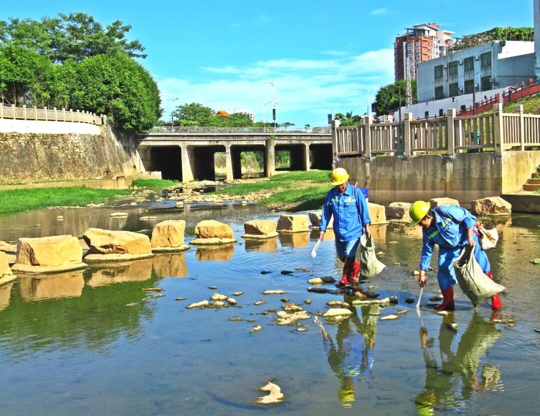 2018-07-27,深圳龙岗。一对来深圳五年多的夫妻,每天一起清理河面,扮靓河道,默默付出……作者:杨梅红了 《守护您的守护》