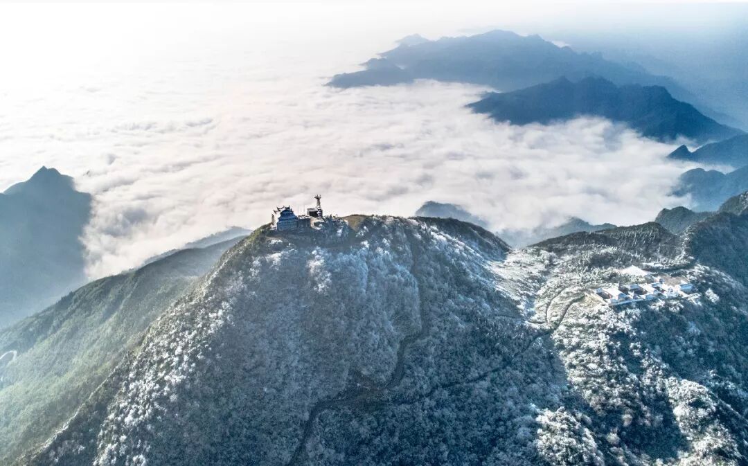 2019-01-04,四川华蓥山。雪后鸟瞰云海奇观,是华蓥山一绝。作者:秋霜~向世明 《雪落苗寨》