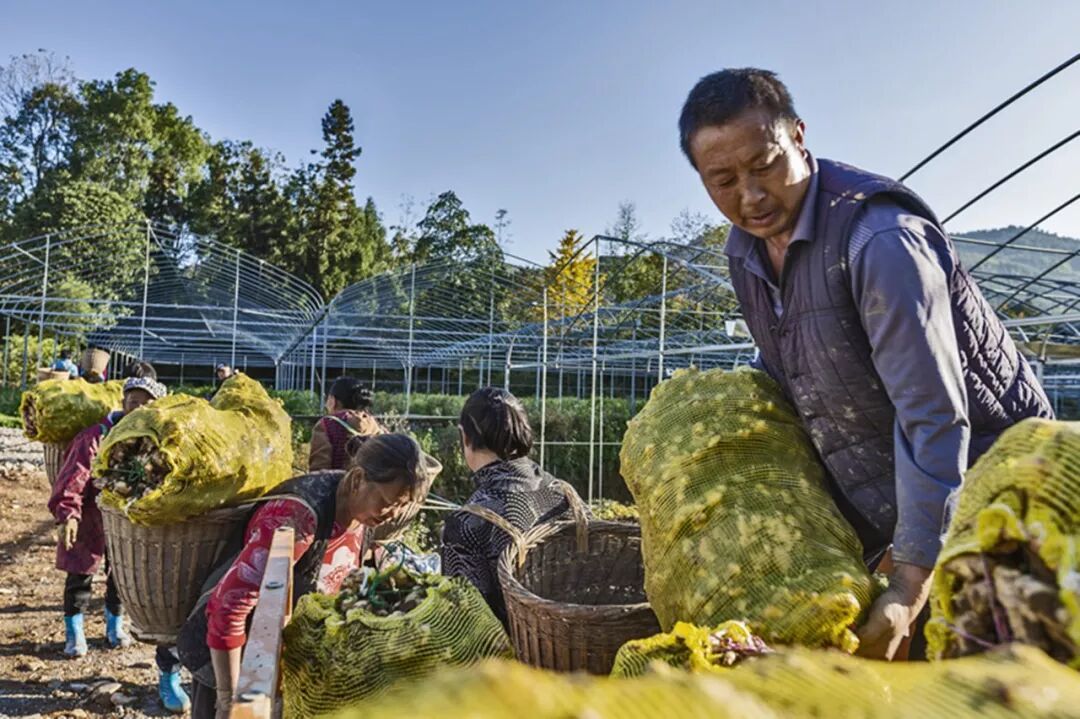 2018-11-17,湖北来凤。 生姜是来凤县土特产,农民正在把生姜装车。作者:杨秀国 《泸沽湖,相看两不厌》