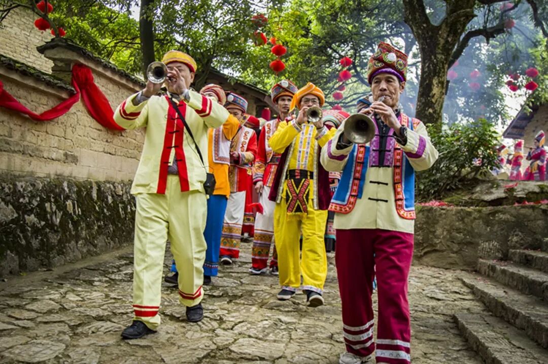 2018-12-29,广西宜州流河寨。壮乡传统婚礼里的吹唢呐。作者:蓝景惠 《戏曲进校园》