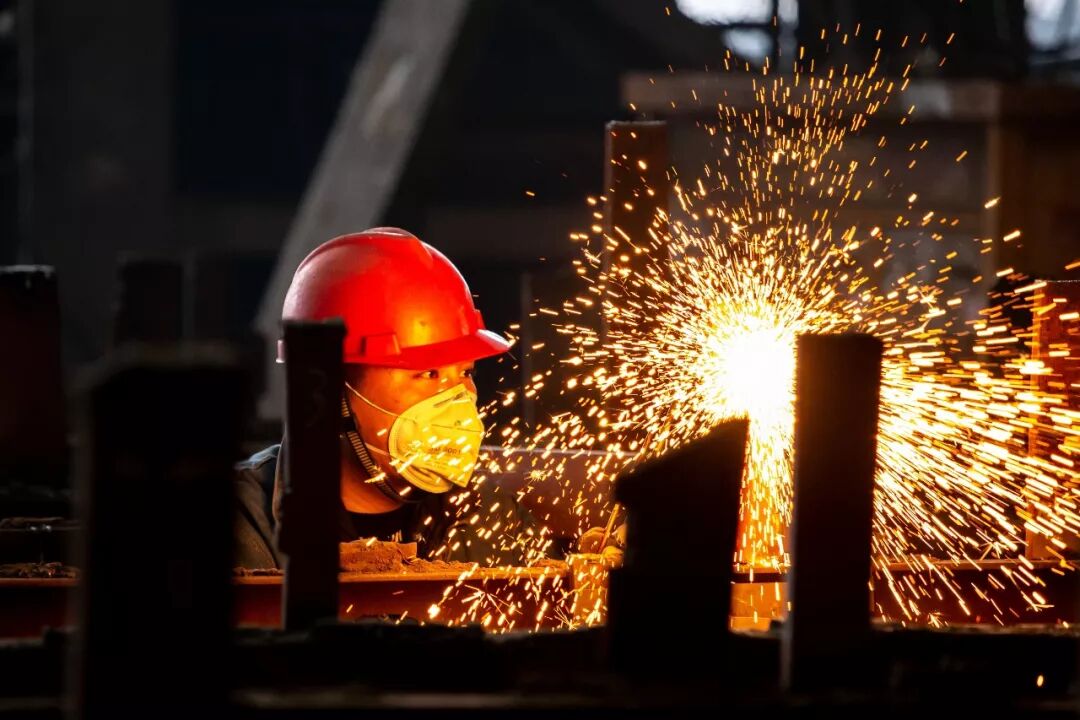 2018-12-02,江苏泰州。为保证流水作业,一位年轻的工人正在割断辅料。作者:红尘 《专注作业》