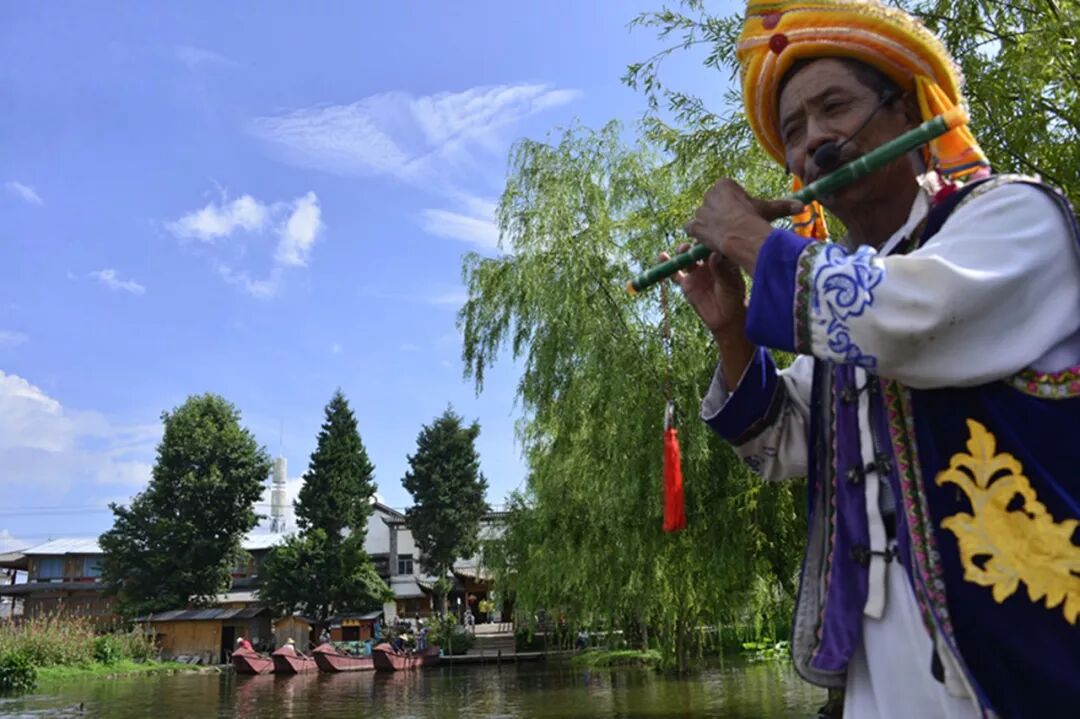 2018-07-15,云南大理洱海。白族老人正在吹竹笛。作者:德阿路旁 《 幸福生活吹起来》