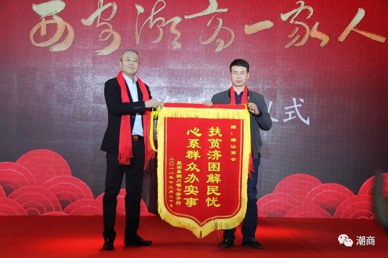 为表达村民们对西安市潮汕商会的谢意,村支部书记张平虎带来了一面写着“扶贫济困解民忧 心系群众办实事”的锦旗在会上赠送给商会并宣读感谢信,郑卓生执行会长上台接受锦旗。这一善举也得到了政府有关部门、社会各界贤达和会员们的好评。