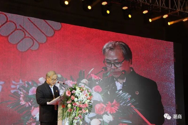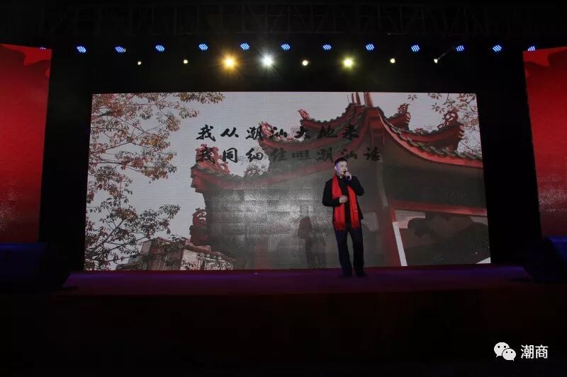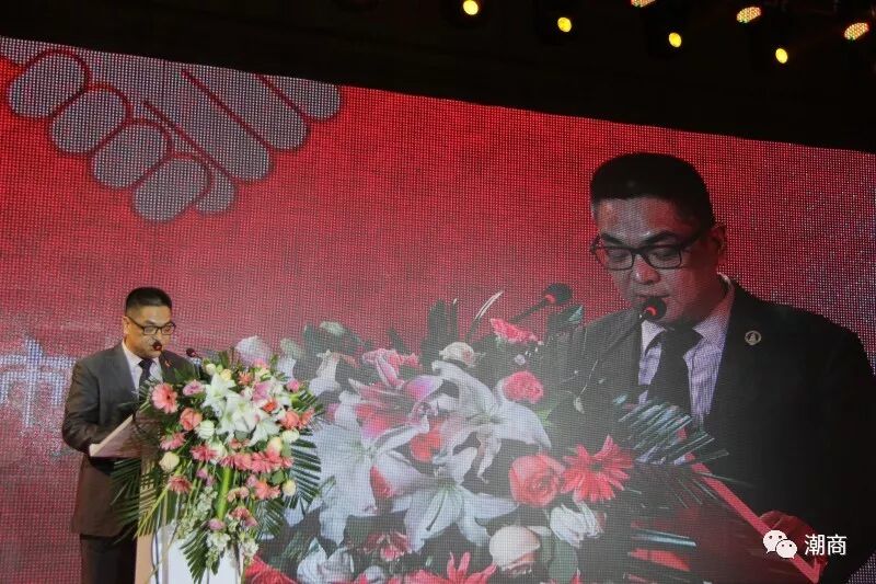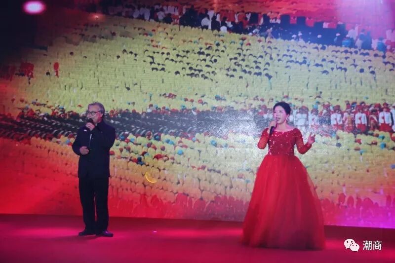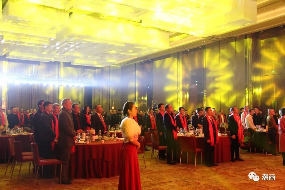 下午6点,全场起立,奏唱《中华人民共和国国歌》,雄壮嘹亮的歌声让人们心潮彭湃、热血沸腾,体现出潮商热爱国家、热爱社会、热爱家庭和热爱商会的家国情怀!