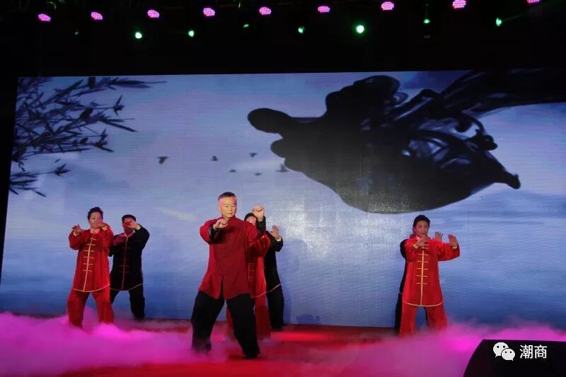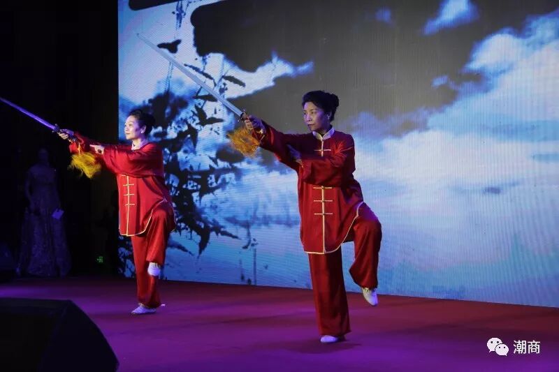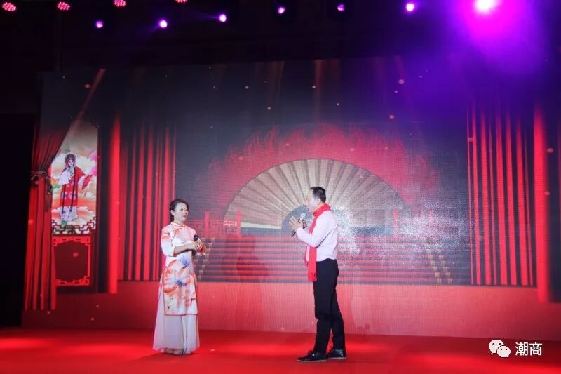 在场领导上台敬酒 值得一提的是,本次“家宴”活动的文艺演出节目全部由会员们自编自导自演,四位主持人更是会员担当!一首潮语歌曲《故乡是潮汕》拉开了文艺演出的序幕,潮剧、潮汕工夫茶表演、朗诵、太极拳、舞蹈、合唱等节目丰富多彩,演绎出潮商的风彩,唱出了时代的主旋律。