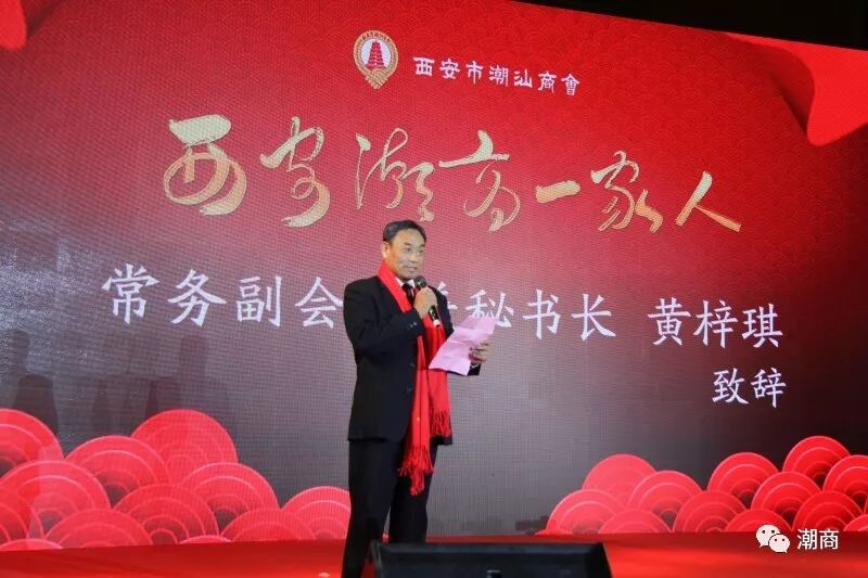 提示:点击上方"潮商"关注我们 ![]() 一元复始,万象更新。 盛世中华,国泰民安。 ![]() 1月12日下午,“西安潮商一家人——西安市潮汕商会2018年会家宴”在西安市曲江凯悦酒店大宴会厅举行。西安市潮汕商会全体会员、在陕部分潮籍乡贤、深圳市潮汕商会代表团,陕西省广东商会、陕西客家联谊会代表应邀出席,逾400人参加此次“家宴”活动。
