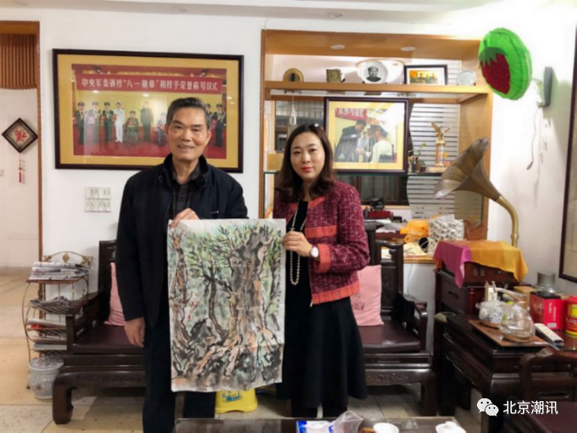 张热云向麦贤得赠送了自己新近特地创作的作品《青山不老》,并代表在京潮人衷心祝愿英雄麦贤得新年吉祥、健康长寿。张热云请麦贤得在她另外创作的一幅画上题字,麦贤得提笔工工整整地写下了“一路有你”四个字。