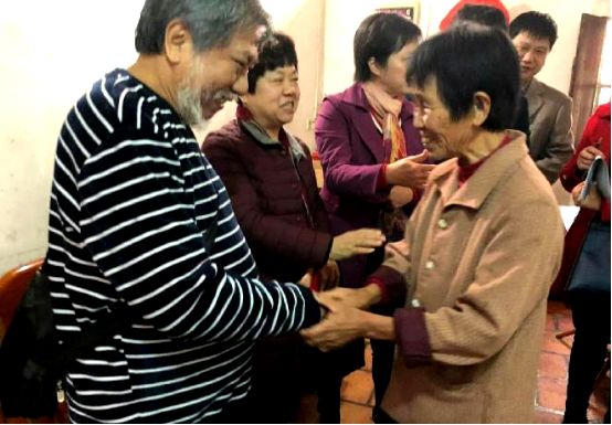 受助侨眷向黄湘江(左1)和基金会表达谢意