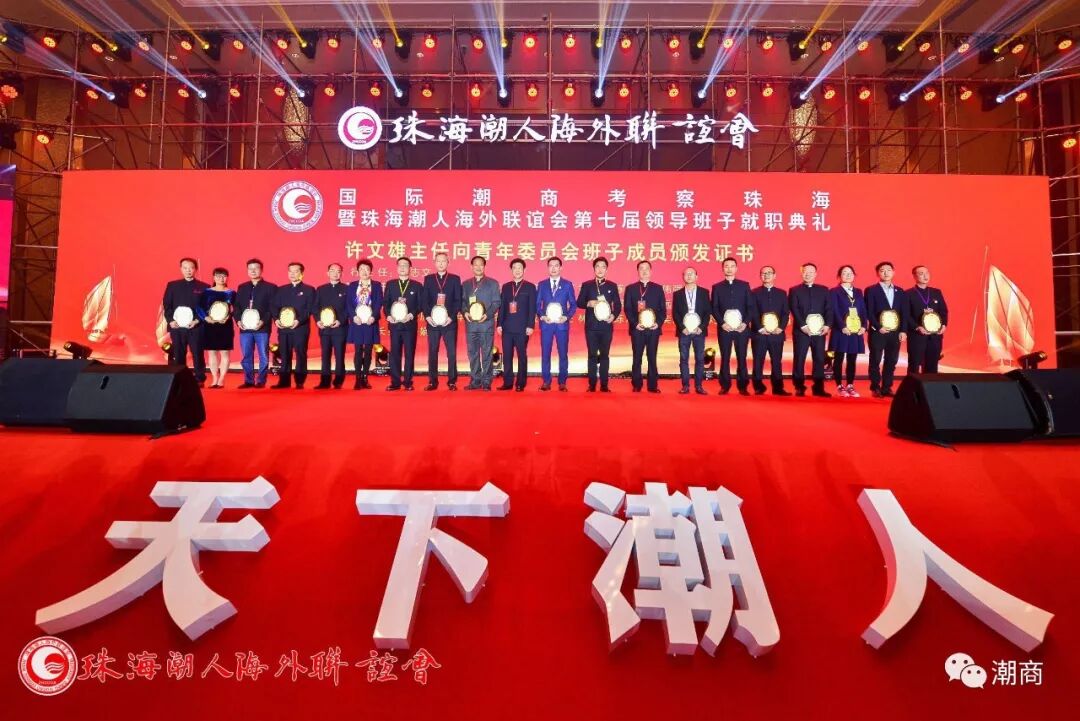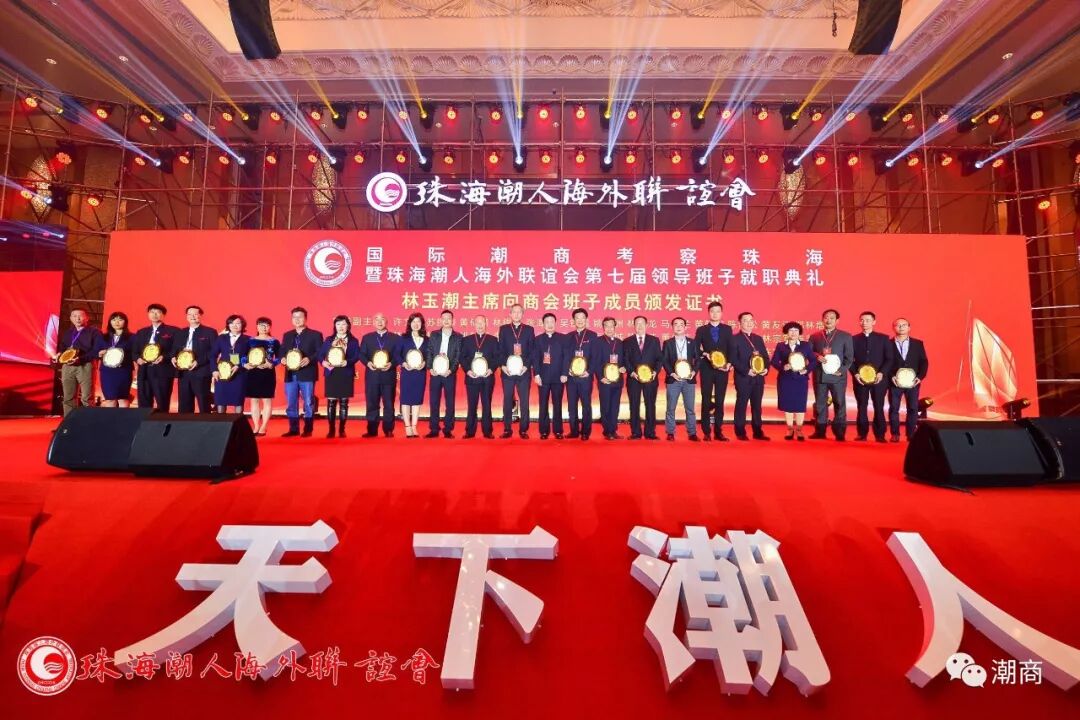 提示:点击上方"潮商"关注我们 ![]() ![]() ![]() 天下潮人,四海同心,商机互动,振兴中华!2019年3月3日,国际潮商考察珠海暨珠海潮人海外联谊会第七届领导班子就职典礼在珠海横琴湾酒店隆重举行,来自潮汕四市代表团、海内外100多个潮团的领袖和商界精英、珠海市有关部门及兄弟社团代表团、潮联会全体会员近1000人,共同见证了新一届领导班子履职。 ![]()